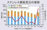 21年度のステンレス鋼板受注/19%増、171万トン/5年ぶり増、18年度並み水準