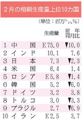 世界粗鋼、7カ月連続減/2月は1億4270万トン、中国の大幅減続く
