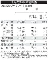 厚板シヤ工組/1月の鋼板流通調査/出荷、2カ月連続前月比減/受入量増加で在庫は漸増