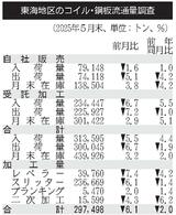 東海コイルセンター工業会/5月鋼板流通調査出荷量減少/月末在庫は増加傾向