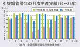 21年の引抜鋼管生産/2期連続20万トン割れ、前年比は22%増加/車減産影響で10月以降鈍化