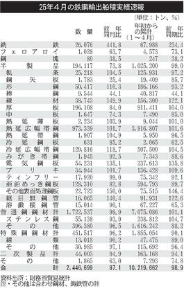 4月品種別鉄鋼輸出/ホット、EU向け皆無続く/厚板は5カ月ぶり20万トン割れ