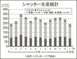 1月のシャッター生産/微減の24万2000平方メートル/重量シャッター、4カ月ぶり減