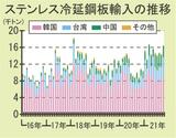 10月のステンレス冷延輸入/86%増、1万6530トンと高水準