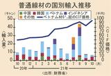 10月の普通線材輸入/低水準の6500トン/東南アジア材急減