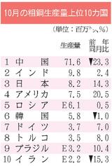 世界粗鋼、3カ月連続減/10月は1億4570万トン、中国2割強減