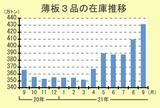 9月末の薄板3品在庫/22万トン増の432万トン/車減産の影響続く