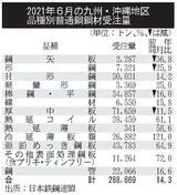九州・沖縄地区/6月の普通鋼鋼材品種別受注/H形鋼、14%増の3万トン