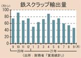 9月の鉄スクラップ輸出/6年ぶり50万トン割れ/37%減、46万7000トン、韓・越向けなど減少
