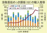 8月の溶融亜鉛めっき鋼板輸入/44%減、2万4400トン/3年半ぶり低水準