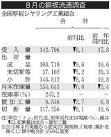 厚板シヤ工組/8月の鋼板流通調査/出荷量、2カ月連続前月比減/実働日数減、夏枯れが影響