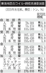 東海コイルセンター工業会/コイル鋼板流通調査/8月、前月比減も前年比では堅調