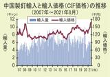 中国製釘の8月輸入価格/高値更新、16万9300円