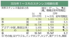 1~3月の世界ステンレス粗鋼/6.2%増の1555万トン