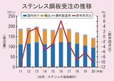 20年度のステンレス鋼板受注/10%減の144万トン/4年連続減