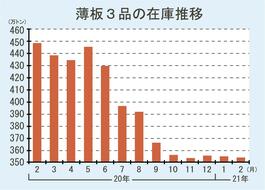 薄板3品在庫、低水準続く/2月末、微減の353万トン