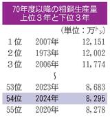 24年度の全国粗鋼生産/70年度以降、過去2番目の低水準/4.5%減の8295万トン/内外需要減退