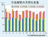 24年度の引抜鋼管生産/5年連続20万トン割れ/2年ぶり減17万6327トン