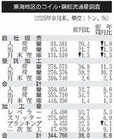 9月コイル鋼板流通/受託加工分の入出荷10%超増/東海コイルセンター工業会
