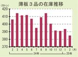 2月末の薄板3品在庫/2カ月ぶり減、385万トン/減少量は過去平均より大幅