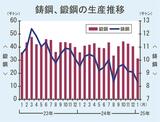 1月鋳鍛鋼生産/鍛鋼、鋳鋼とも13%減/減少傾向続く