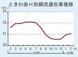 2月末のときわ会H形鋼在庫/3カ月連続増、6カ月ぶり21万トン/在庫率縮小も〝危険水域〟続く