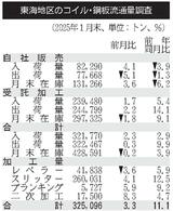 東海コイルセンター工業会/1月の鋼板流通調査/入出荷とも前月比微増