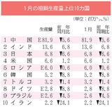 1月の世界粗鋼生産/4%減、1億5140万トン
