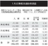 1月の建材6品種流通動態/販売量7%減、13万2000トン/在庫横ばいも在庫率は上昇/全鉄連