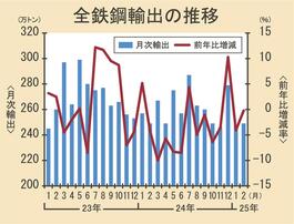 2月の鉄鋼輸出、微減の249万トン/輸入は中国材が6カ月連続増