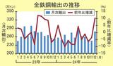 鉄鋼輸出/24年、3%減の3139万トン/通商措置でEU向け3割減