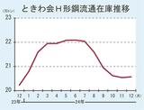 ときわ会のH形鋼在庫/12月末、微増の20万5700トン/年末で動意薄、在庫過剰感なく