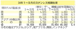 世界ステンレス粗鋼/24年1~9月、最高の4609万トン