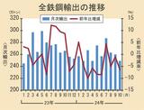 10月鉄鋼輸出6.4%減/249万トン、海外市況低迷が影響/設備トラブルや通商措置も