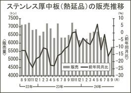 ステンレス厚中板流通販売/24年度上期、リーマン下回る/2年連続年間8万トン割れの公算