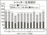 10月シャッター生産/3%減、28.5万平方メートル/減少続くもマイナス幅縮小