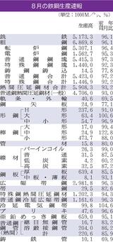 東鉄連の8月形鋼調査/販売総量17%減、2.7万トン/在庫は縮小
