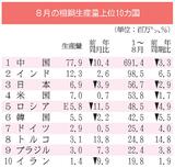 8月の世界粗鋼、2カ月連続減/中国は2桁減