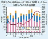 7月熱延コイル輸入/27%増、14.7万トン/輸入価格6カ月ぶり値下がり