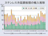 7月のステンレス冷延輸入/17%増の1.7万トン/中国が高水準