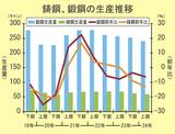24暦年上期の鋳鍛鋼生産/鋳鋼6万トン割れ/鍛鋼はコロナ禍20年以来低水準