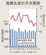 6月全国粗鋼、4%減の702万トン/需要減速、4カ月連続減/1~6月は2.6%減の4270万トン
