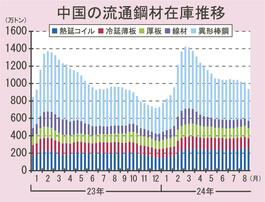 中国の鋼材流通在庫/8月下旬は1000万トン割れ/2月上旬以来