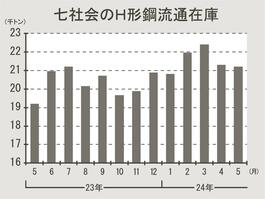 七社会/九州のH形鋼特約店在庫/5月末、2カ月連続減