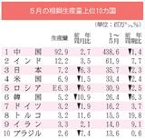 5月の世界粗鋼生産/3カ月ぶり増、1億6510万トン