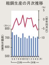 全国粗鋼、3カ月連続減/5月は6.3%減の717万トン