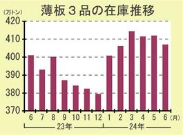 6月末の薄板3品在庫/2カ月ぶり減、407万トン/メーカーの生産調整進展