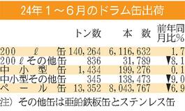 1~6月のドラム缶出荷/1.7%増の612万本