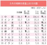 中国鋼鉄工業協会/4月中旬の粗鋼生産は微増/先物高で増産機運