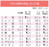 世界粗鋼/10月、2カ月連続減/中国は2桁マイナス